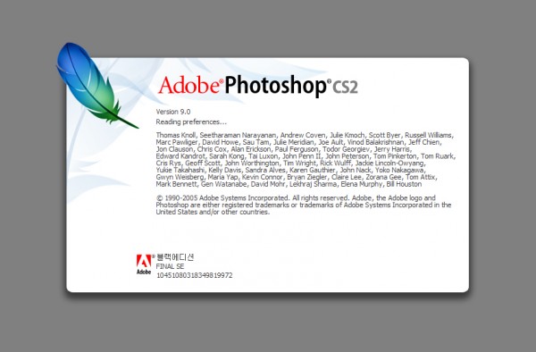 Photoshopr과 Painter는 유사한 측면이 많이 있지만 확연히 구분되는 도구입니다. 두 프로그램은 필요시 서로 보완되는 프로그램으로 각각의 특성을 파악하면 디지털아트 영역에서 용도에 맞게 잘 활용할 수 있을 것입니다. (아래 화면은 각각의 인트로 화면입니다.)
